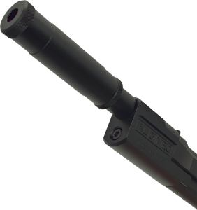▲サプレッサー装着時。内部には「マルチサプレッサー」を小型化した専用バッフルを装備。実際に抑音効果もある。